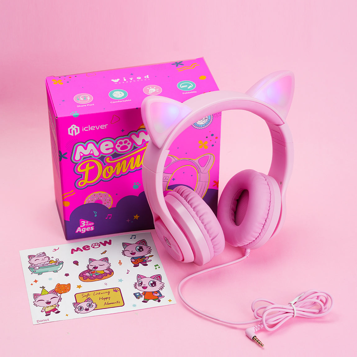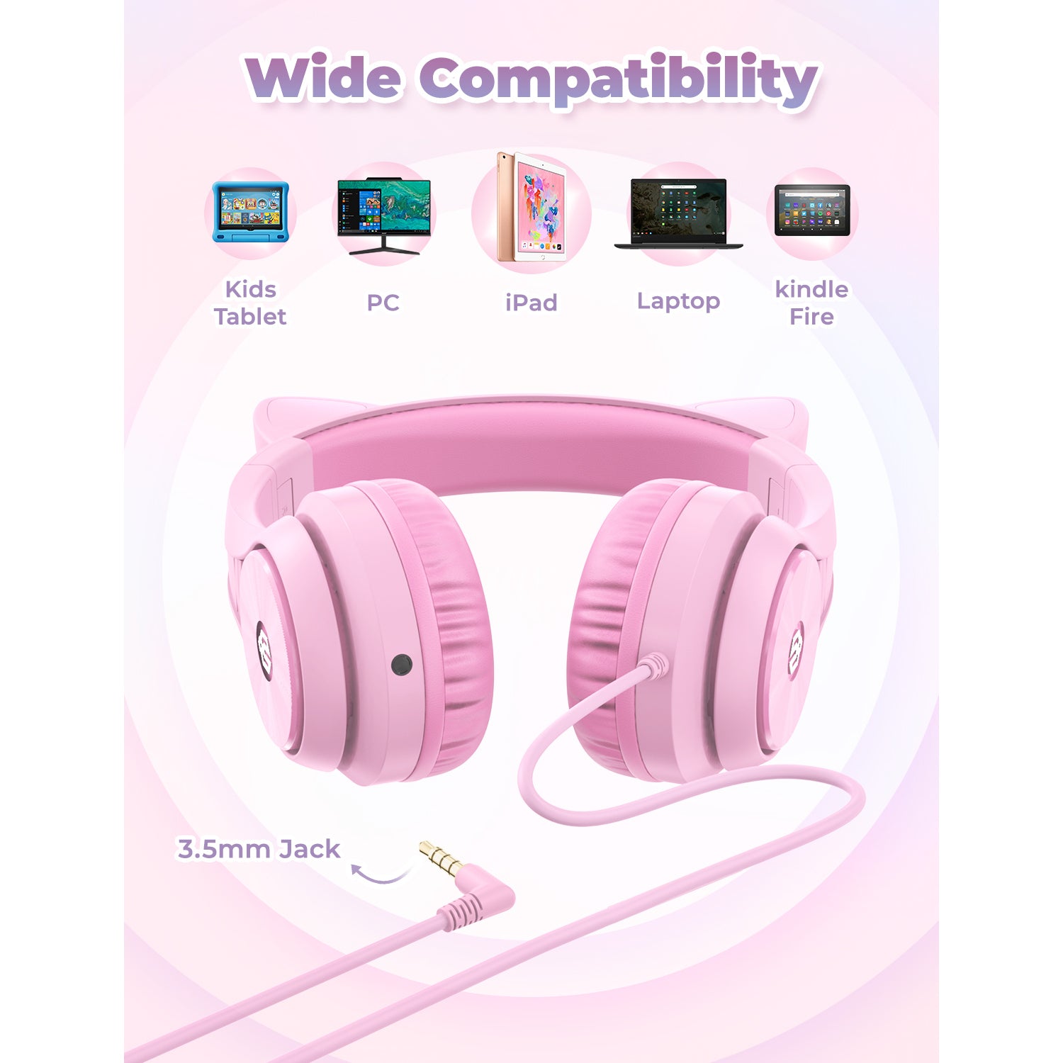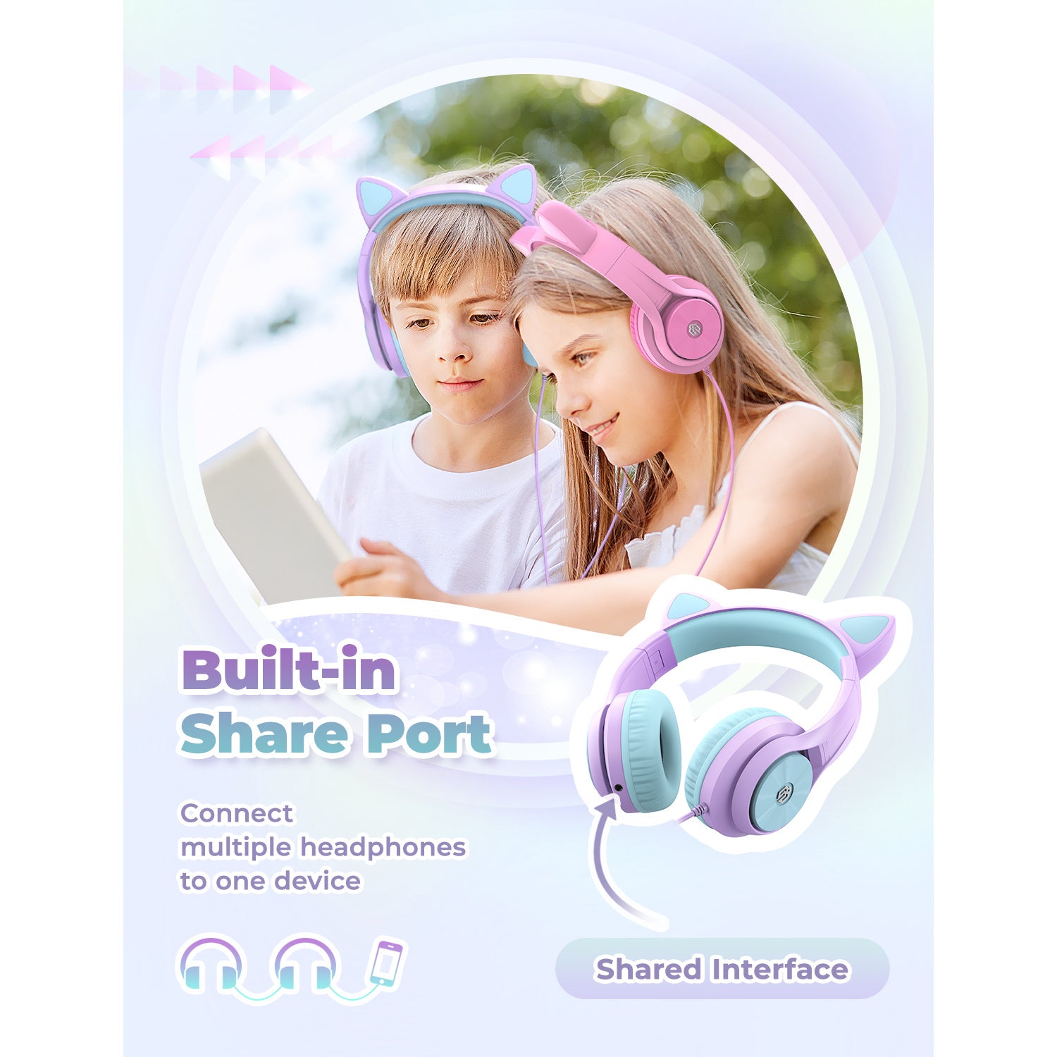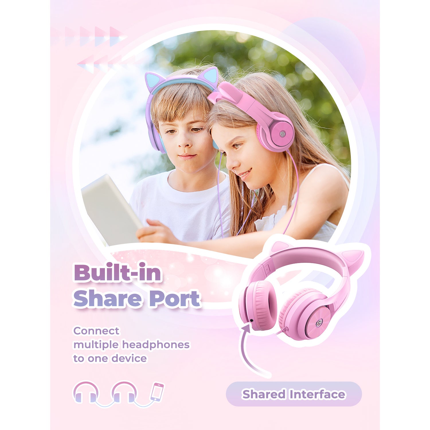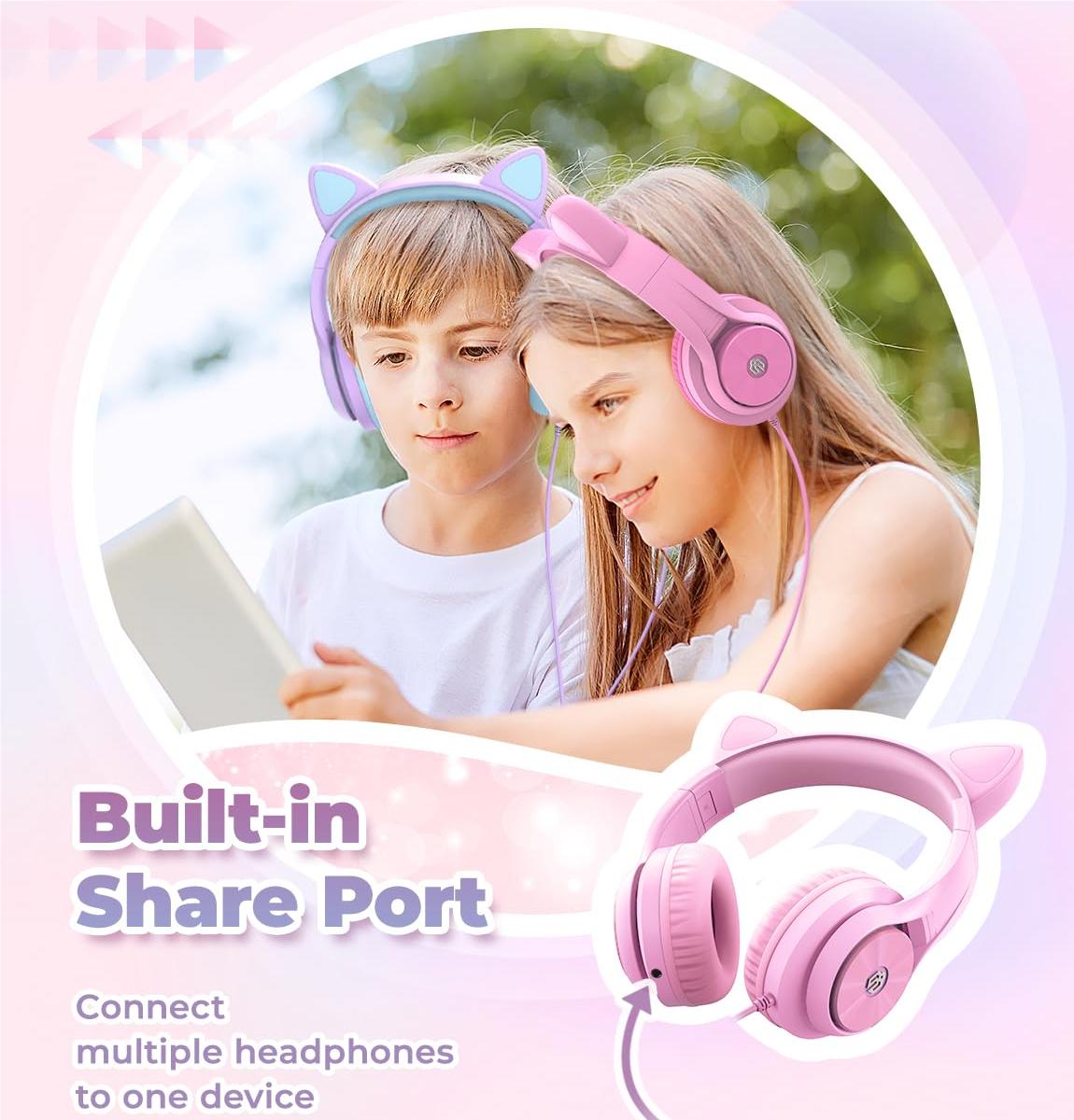 No need for a splitter! Each ear cup is equipped with a headphone jack for sharing music with friends.. With the foldable design, iClever kid headphone significantly outshine other models in terms of convenience.