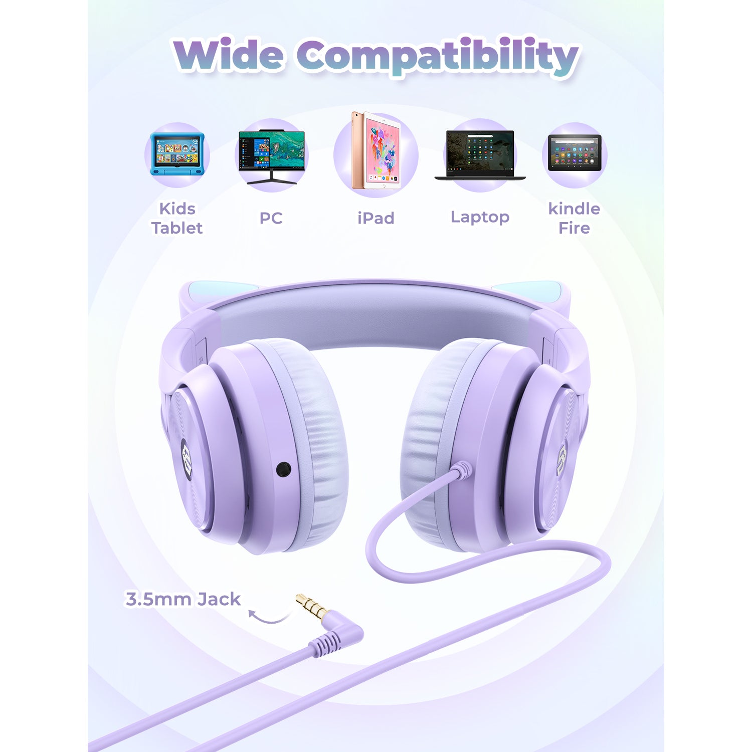 "The standard 3.5mm jack makes these wired headphones universally compatible with most devices, such as iPad, Kindle Fire, Chromebooks, and Kids Tablets, etc.