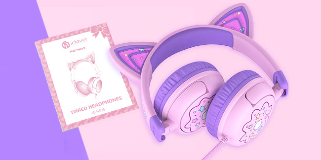 The iClever Meow Lollipop will be a big hit among kids! This headphone set includes an iClever Meow Lollipop headphone and a user manual. Ideal gift choice for kids at Christmas, Halloween, on birthday and so much more!