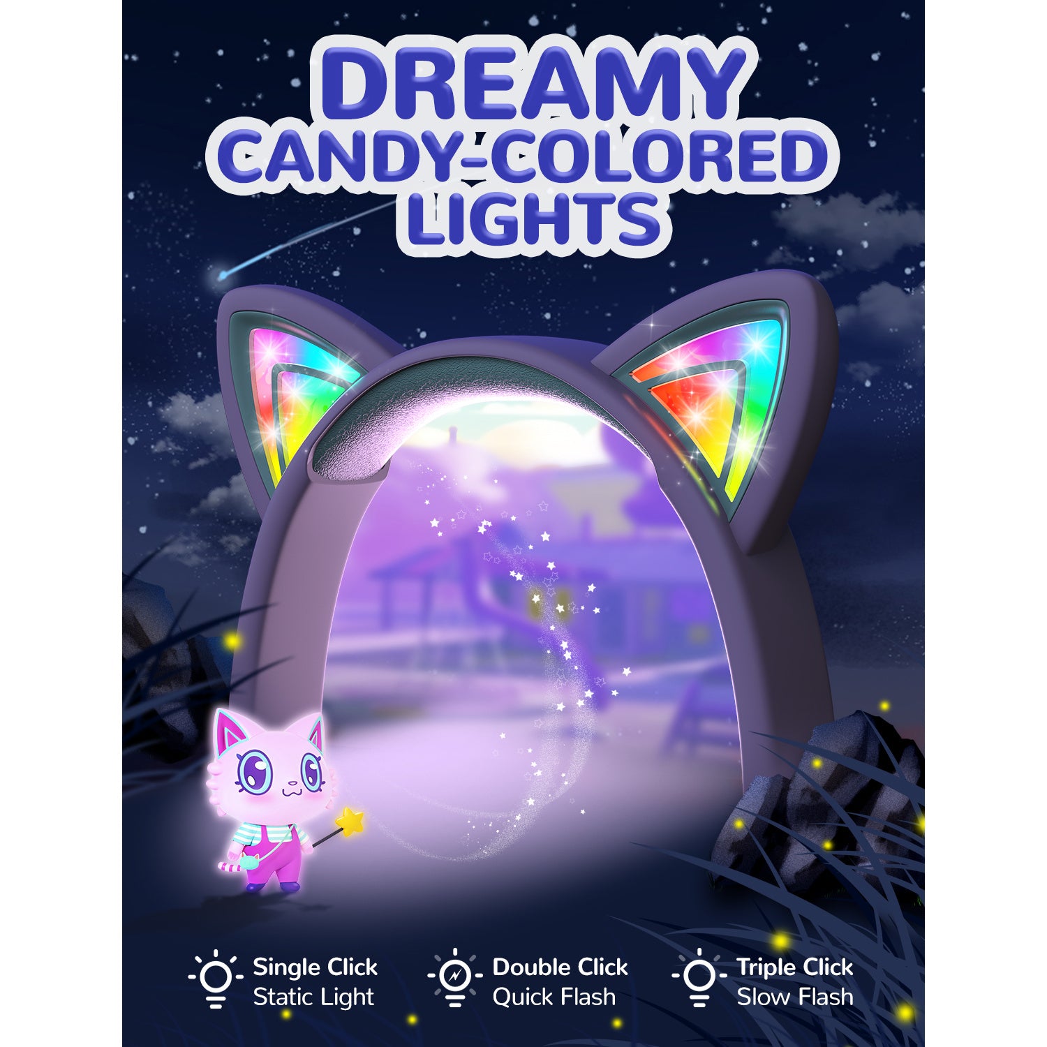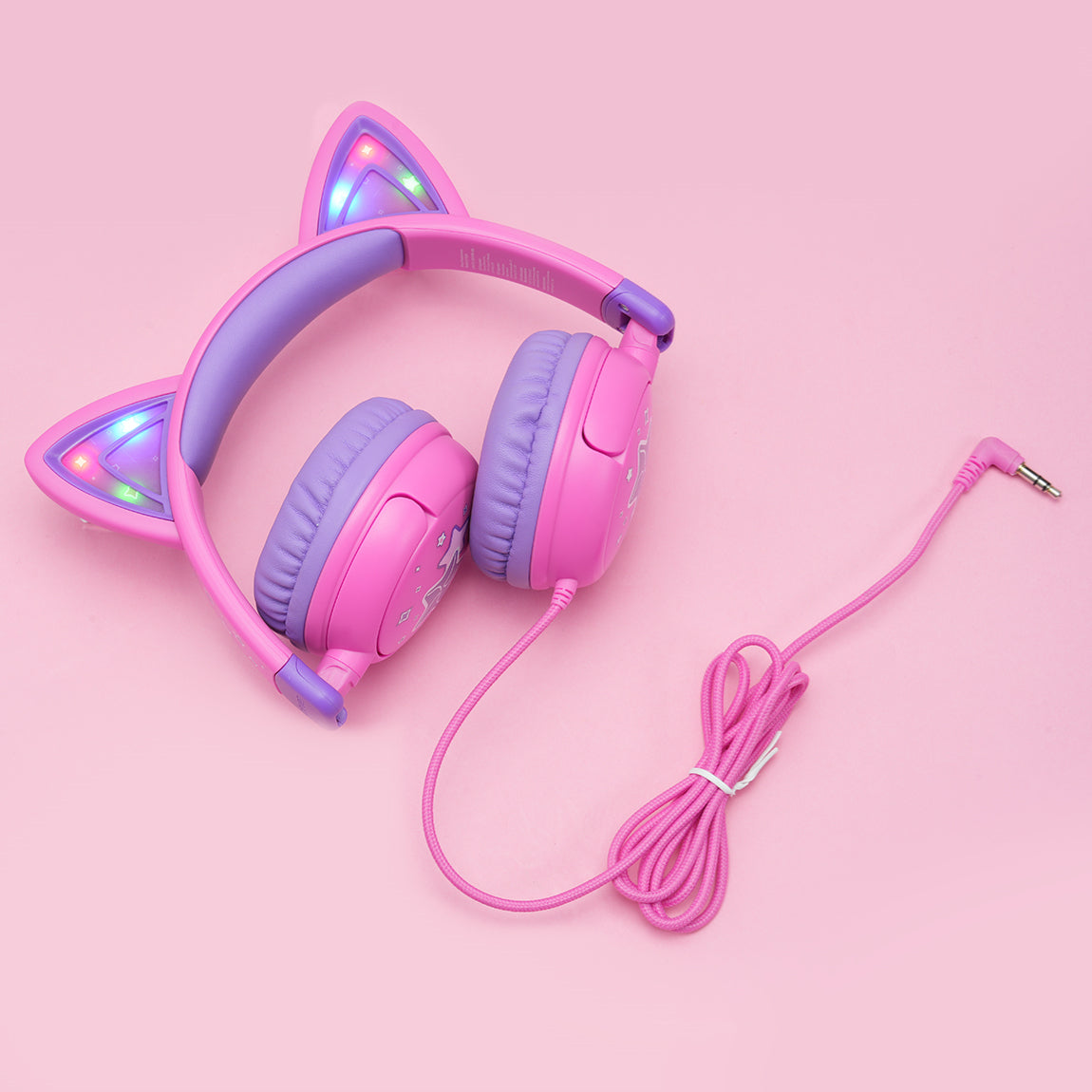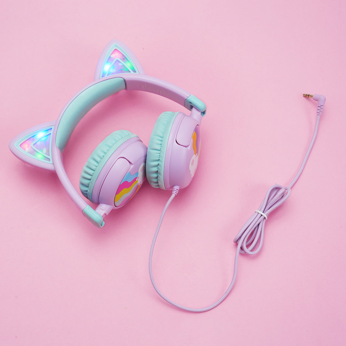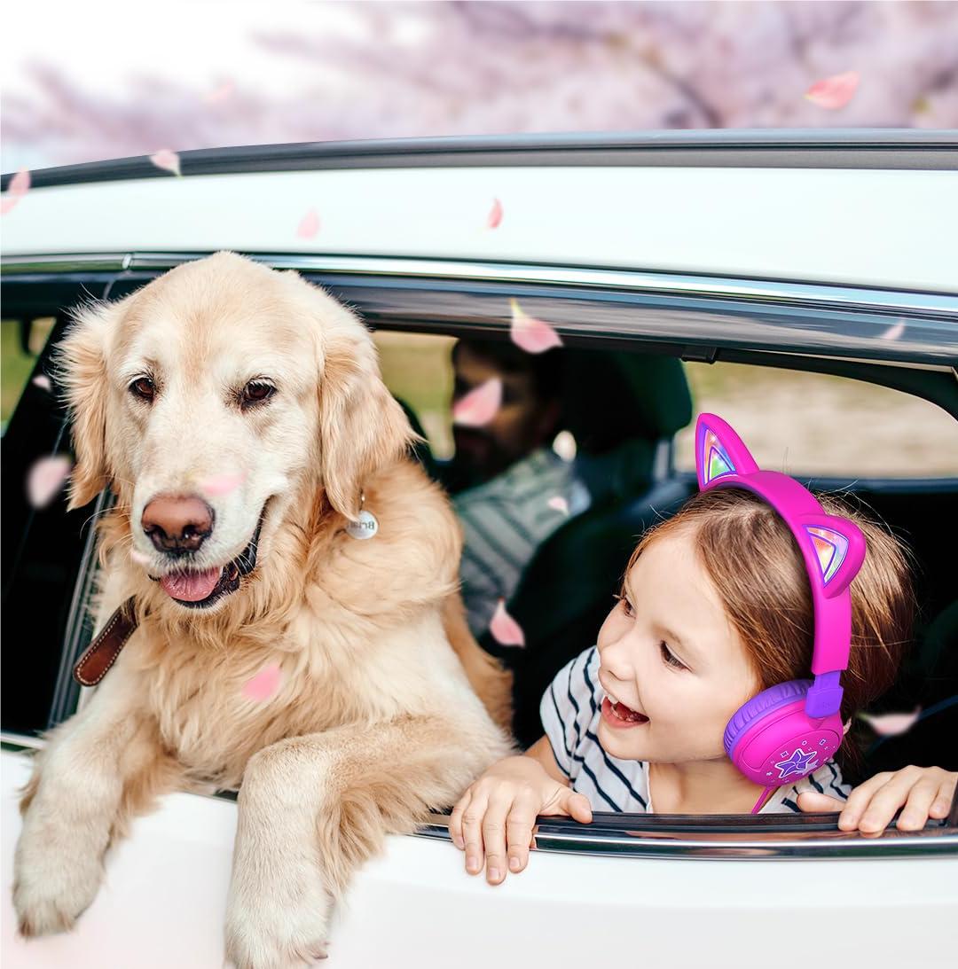 The kids cat ear headphones comes with cat-ear shapes that give off dazzling RGB lights. Better yet, to make these headphones more lovely and cheerful, we' ve printed some cute and exquisite patterns on the ear shells and headband! Now, you' ve got the perfect gift idea for any festive occasions.