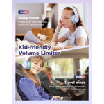Specially designed for children, these headphones can be limited to a sound level of 74dBA to prevent damage to kids' ears in daily life. They can also reach 85dBA for clearer but still safe sound in noisy environments such as airplane cabins or car rides.